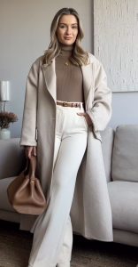برای اکسسوری مثل کیف و کمربند میتوانید از رنگ های تیره تر مثل کرم یا خاکستری روشن استفاده کنید یا به رنگ شیری و سفید در اکسسوری هم وفادار بمانید.